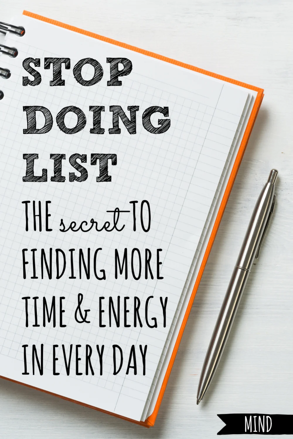What’s a stop doing list? Just what it sounds like! It’s a list of things I’m committing to stop doing, in order to create more time and energy for the things that matter more to me, like family, faith, and all of those goals I’d like to reach.